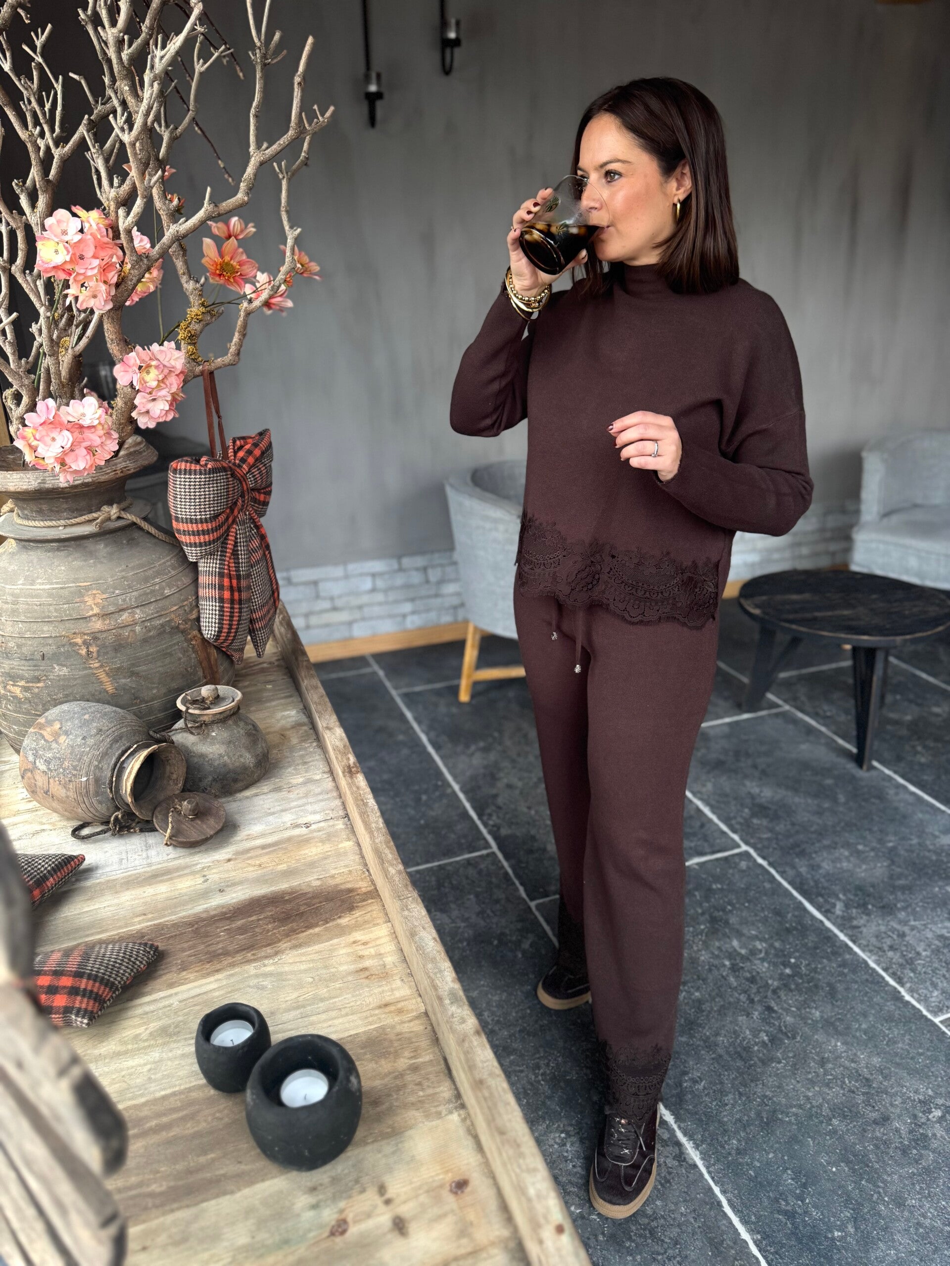 Dankzij de prachtige kant aan de trui en onderaan de broek is dit zoveel meer dan een huispak.
